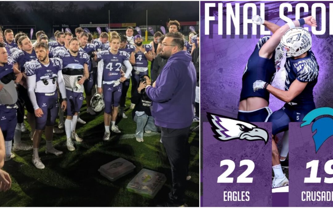 Beim Charity Bowl in Reutlingen sehen 1.400 Fans ein spannendes Spiel: Die Eagles gewinnen ein Testspiel knapp mit 22:19 gegen die Albershausen Crusaders.